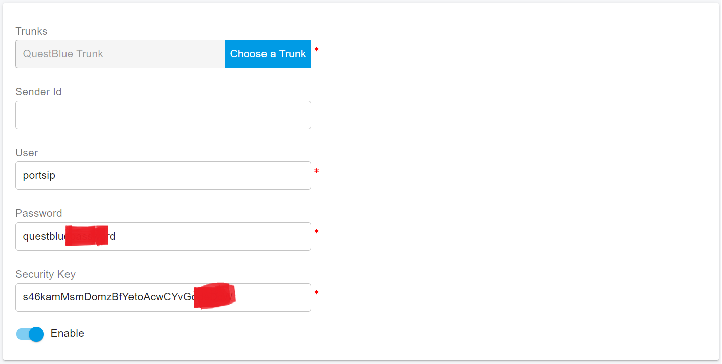 ### Configure SMS with a QuestBlue Trunk in PortSIP PBX