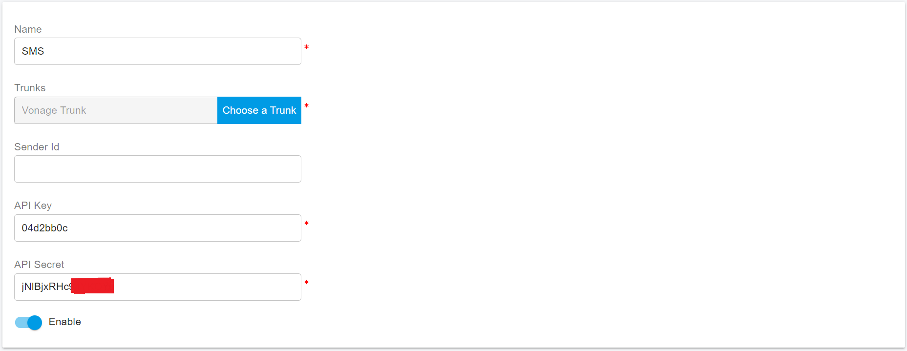 Enter the Vonage [API Secret obtained earlier](#obtain-the-vonage-api-key).