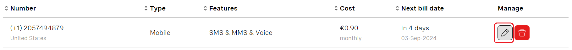 3. Click the **pencil icon** in the **Manage** column.