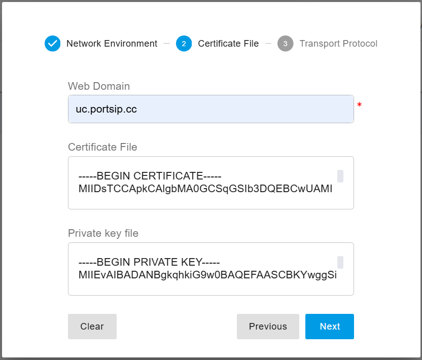 2. Open the **portsip.pem** file in a text editor (such as Windows Notepad), and copy the entire contents into the **Certificate File** field.