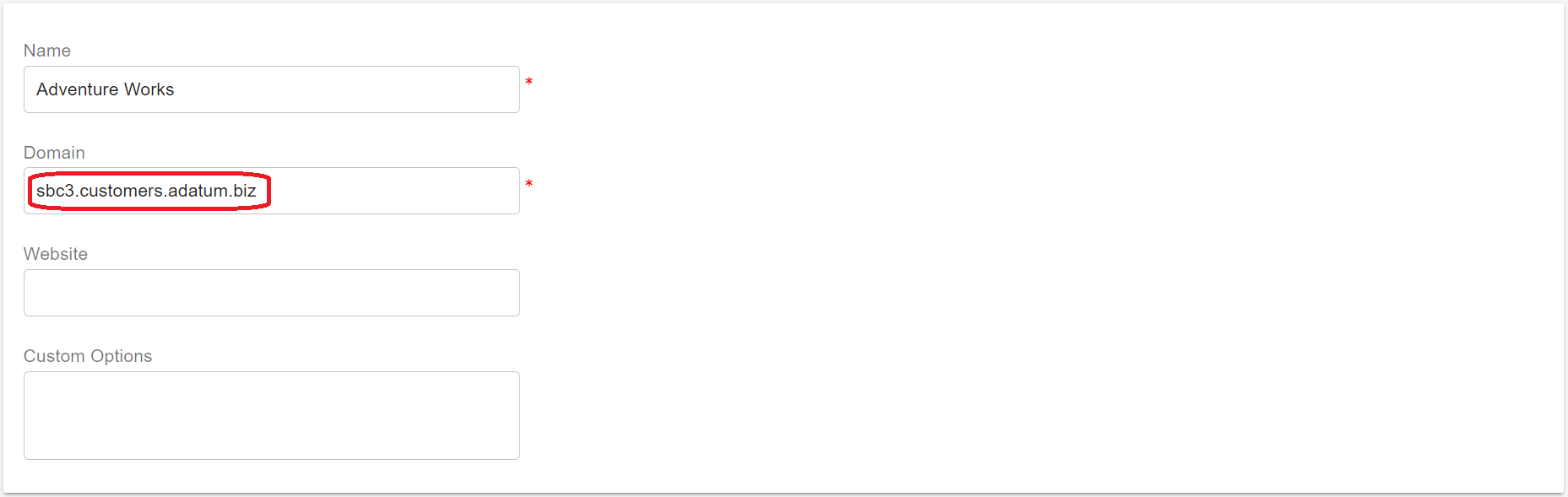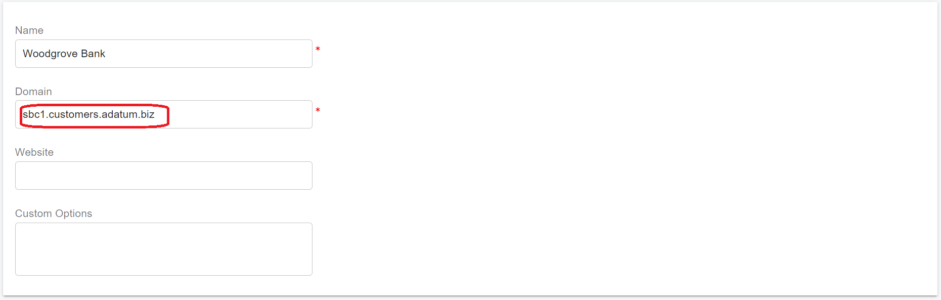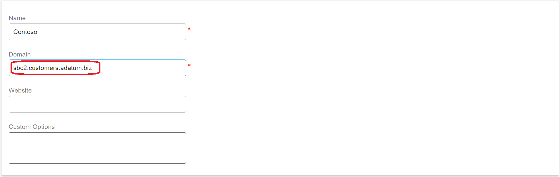 * When [adding the Teams Base Domain](https://support.portsip.com/portsip-communications-solution/portsip-pbx-administration-guide/configuring-sbc-and-pbx#1-add-teams-base-domain), enter **customers.adatum.biz** as the Teams Base Domain.
