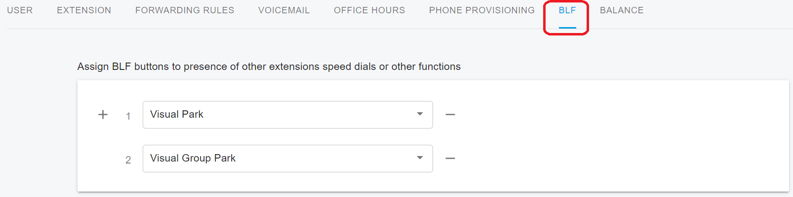 * BLF keys have been configured for **Visual Park** and **Visual Group Park**