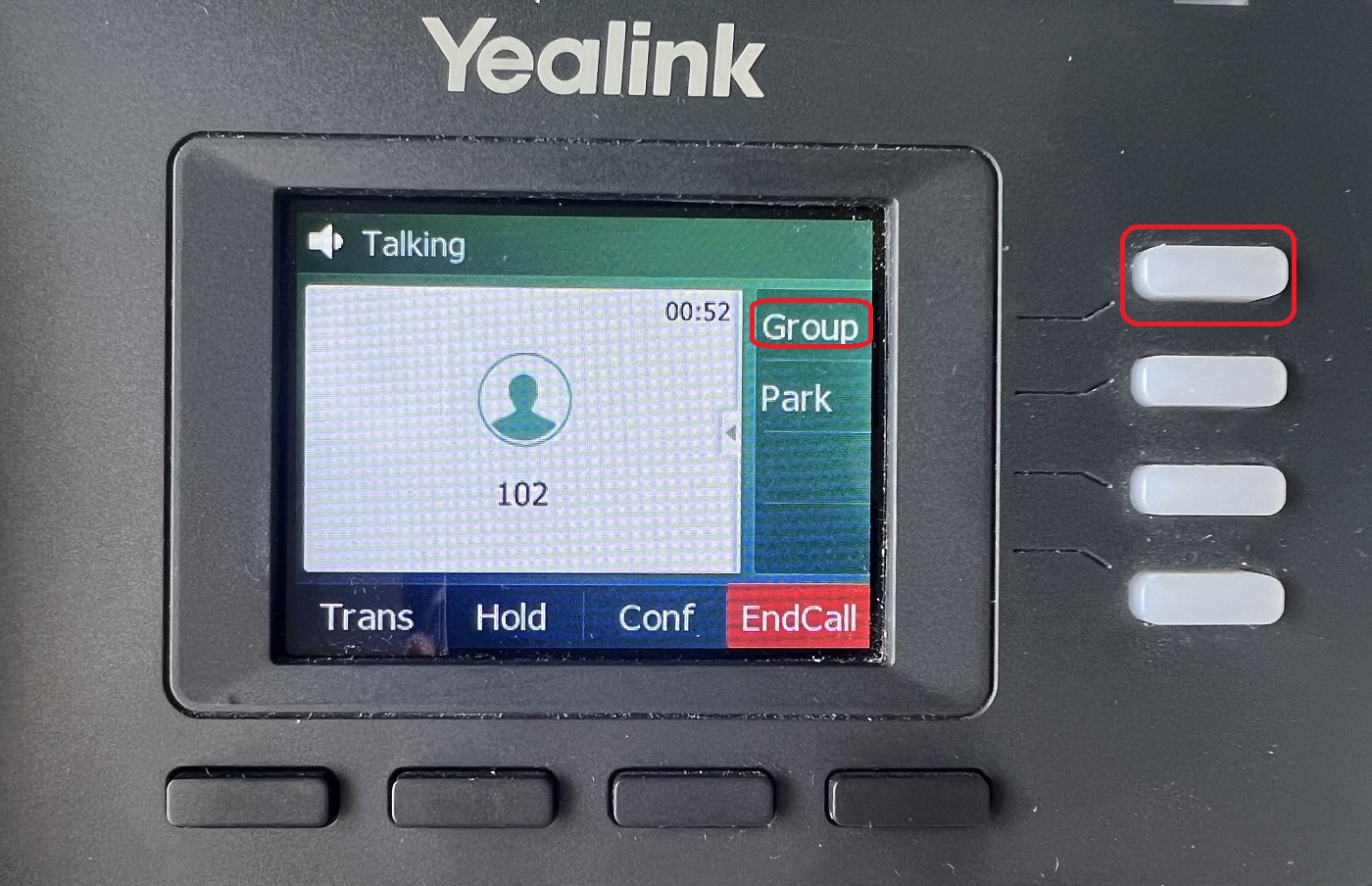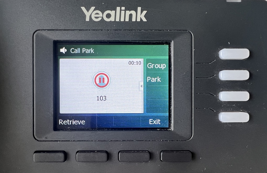 * As shown on the IP phone screen in the screenshot above, pressing the **Group Park** key parks the call to the group.