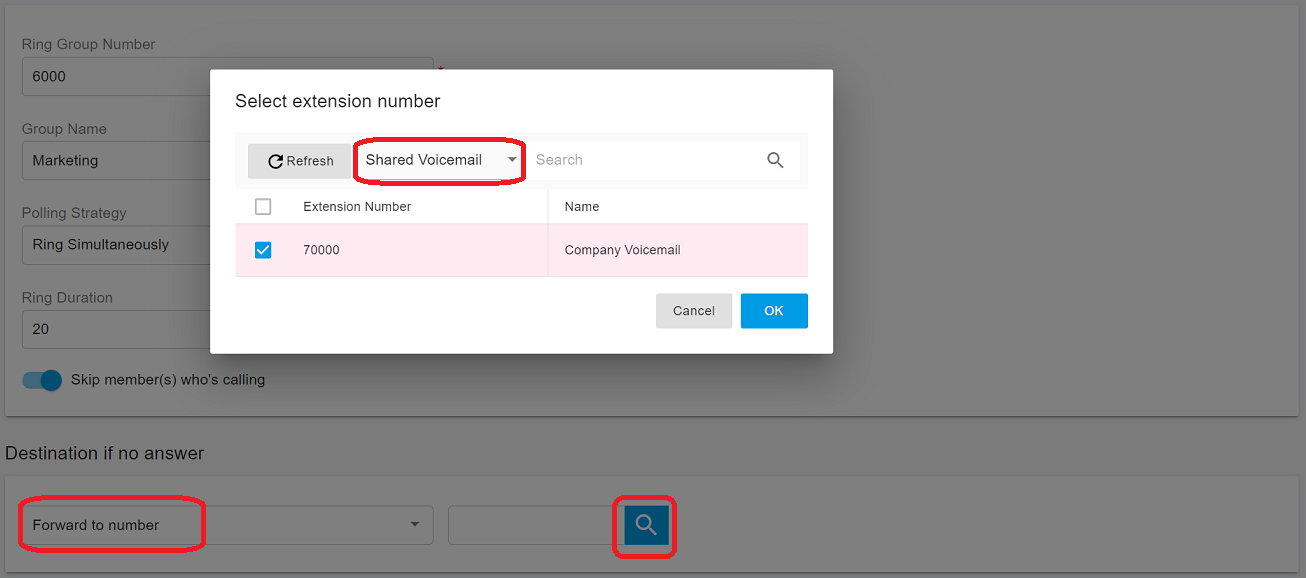 3. In the popup window, select **Shared Voicemail**.