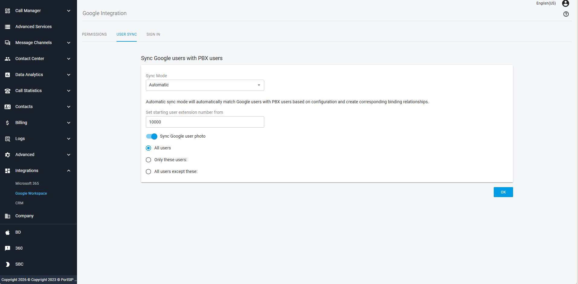 * Automatically create PBX extension users based on Google Workspace accounts.