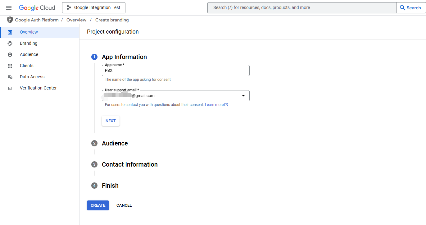 After the project is created, you can proceed with configuring OAuth credentials for PortSIP PBX.