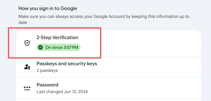 * You must **enable 2FA** with your Google account. Please see the screenshot below