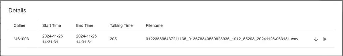 The CDR is linked with the recording file, which can be downloaded and played in a browser.